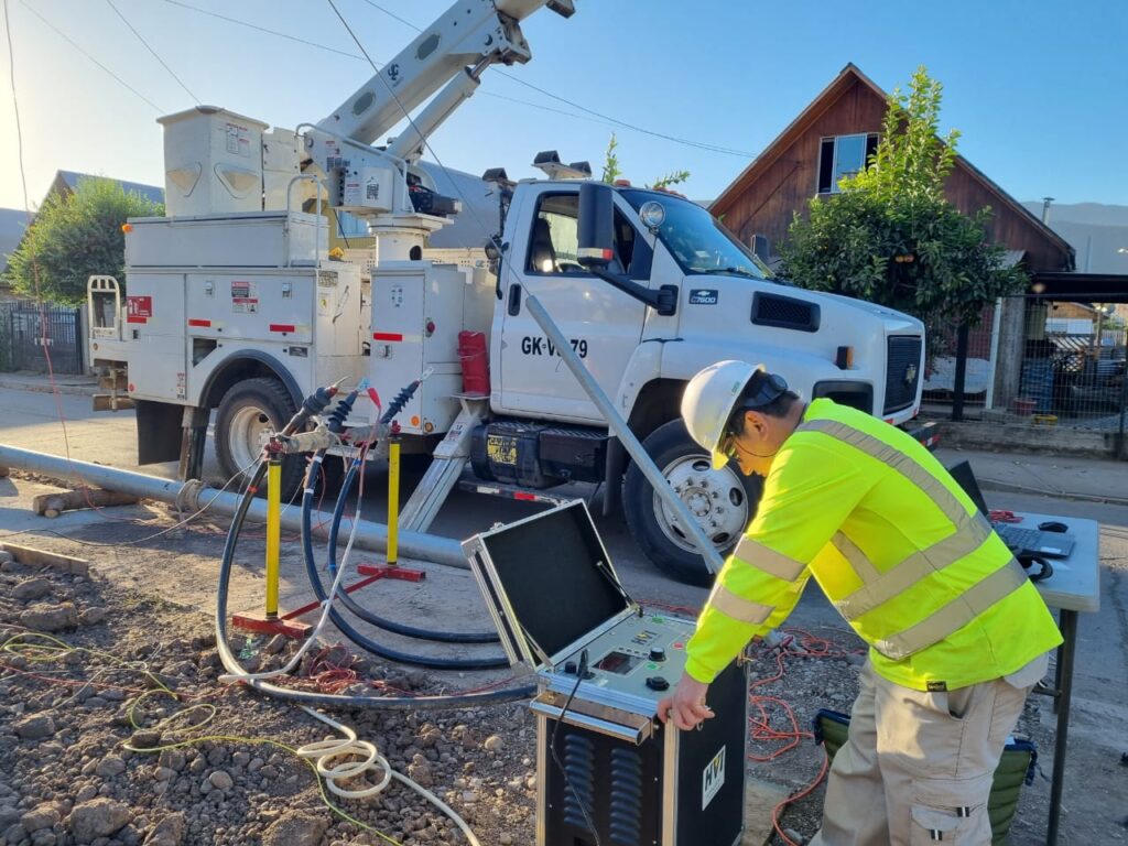 Utilizamos tecnología de muy baja frecuencia (VLF) para inspeccionar la integridad de cables soterrados y empalmes (mufas). Este ensayo permite identificar puntos débiles en el aislamiento, conexiones defectuosas y fallas latentes que pueden derivar en cortes de energía.